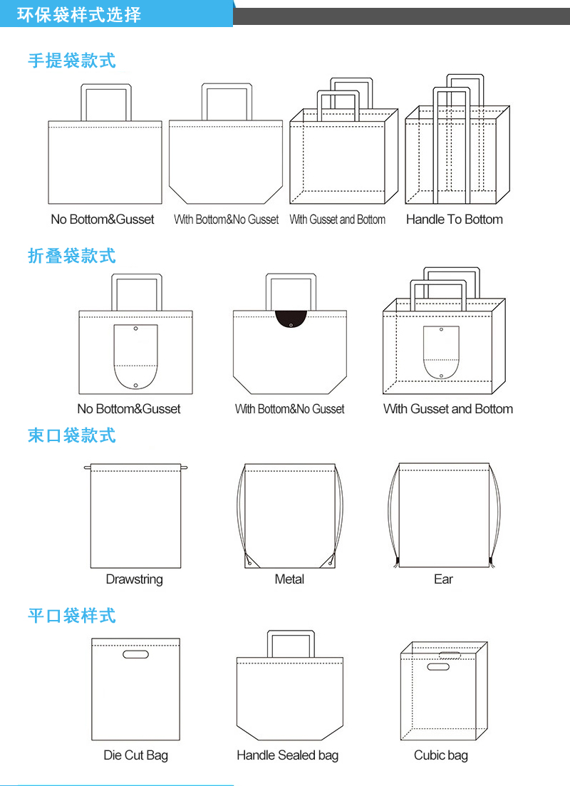 款式:手提袋,折叠袋,束口袋