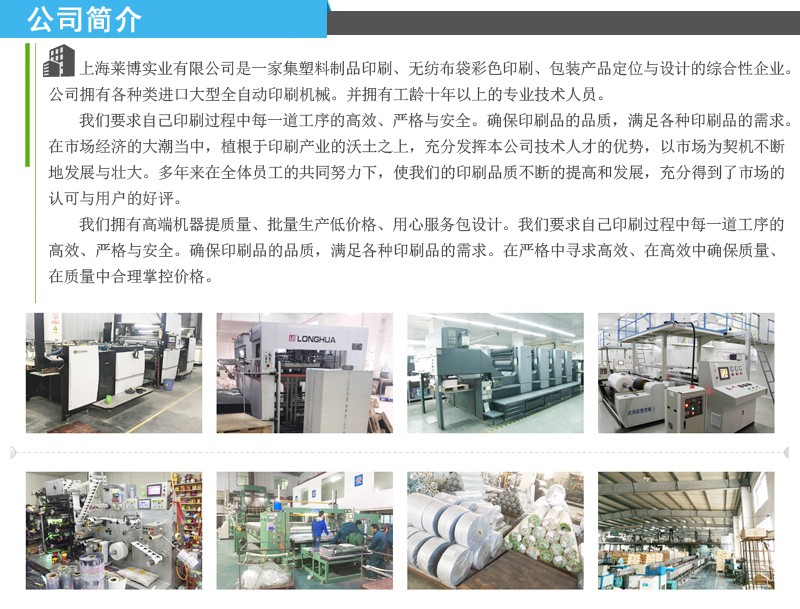 上海莱博包装是一家位于上海专注环保袋定制订做的厂家,产品涵盖:覆膜彩印袋、丝网普印袋、热合立体袋、人工车缝袋、扣手袋、折叠钱夹袋等环保袋。莱博包装是一家集环保袋研发、生产、销售服务为一体的厂家。